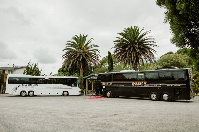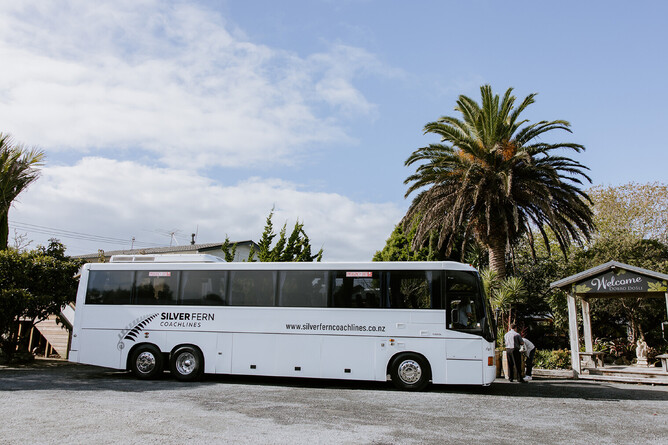 Chartered Coaches: For larger weddings or if guests are coming from further away, a larger coach might be more suitable. Silver Fern Coachlines is one of our key vendors at Markovina Estate in Auckland.