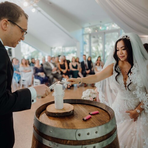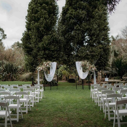 With a 9 different types of wedding ceremony areas including The Chestnut Tree, Two Kauri Trees, The Pergoda, Cherry Blossom, Pebble Beach, Barrel Waterfall, The Palms, The Barrels, and Stone Fireplace, you are sure to find the perfect place to say "I do".