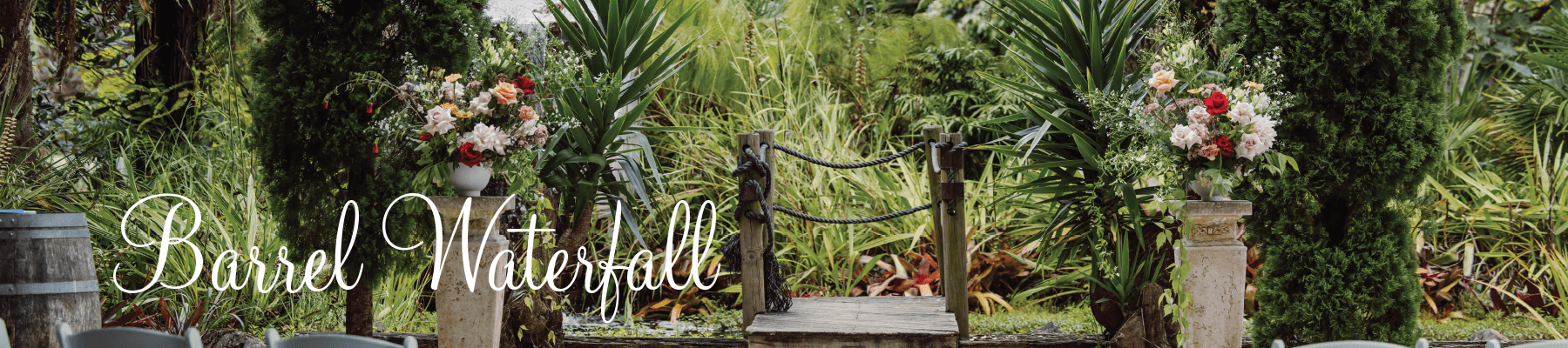 With a 9 different types of wedding ceremony areas including The Chestnut Tree, Two Kauri Trees, The Pergoda, Cherry Blossom, Pebble Beach, Barrel Waterfall, The Palms, The Barrels, and Stone Fireplace, you are sure to find the perfect place to say "I do".